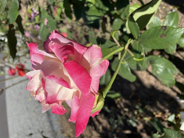 A vibrant and full-petaled grandiflora rose with beautiful red blend coloring.
